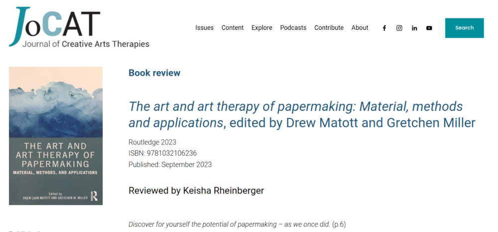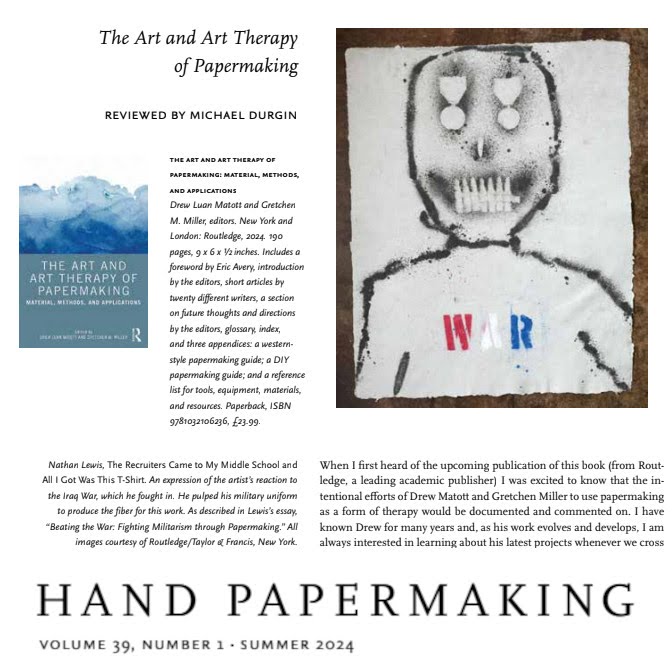 Margaret and Drew will lecture on how they use papermaking as a tool for social action and healing with veterans, art therapists and survivors of terrorism in the UK.