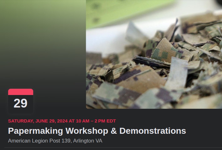 Honoring Vonnegut's military service, the library is hosting Veterans Reclaim Armistice Day; a series of panels, artist talks, creative writing and papermaking workshops aimed at helping veterans express themselves as poets & artists. Malachi Muncy will be working with veterans to reclaim their military uniforms by transforming them into paper art.