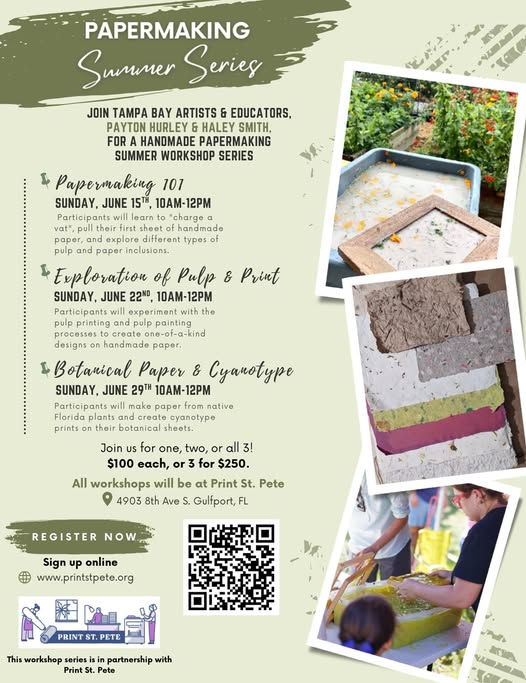 This summer she is partnering with artist Haley Smith to conduct a series of paper & print workshops. The workshops are hosted by PRINT ST. PETE, a risographic print studio in St. Petersburg.