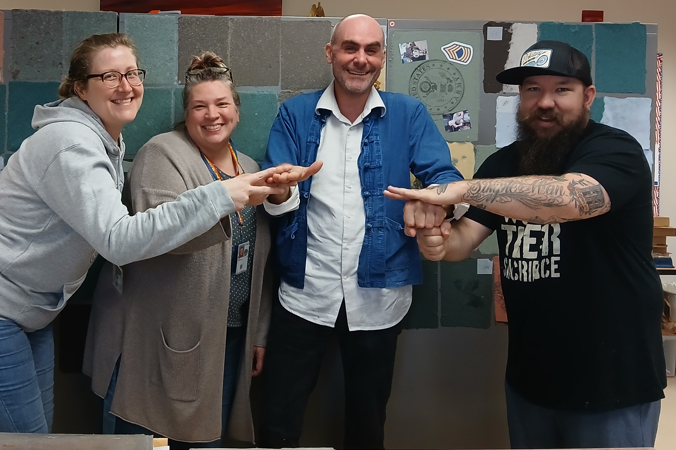 Drew Matott & Margaret Mahan continue to team up with art therapists at the Hines VA to conduct papermaking, bookbinding and printmaking workshops for veterans.