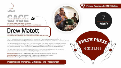 Peace Paper Project will conduct a series of papermaking workshops and Hollander beater trainings with students & staff at Zayed University.